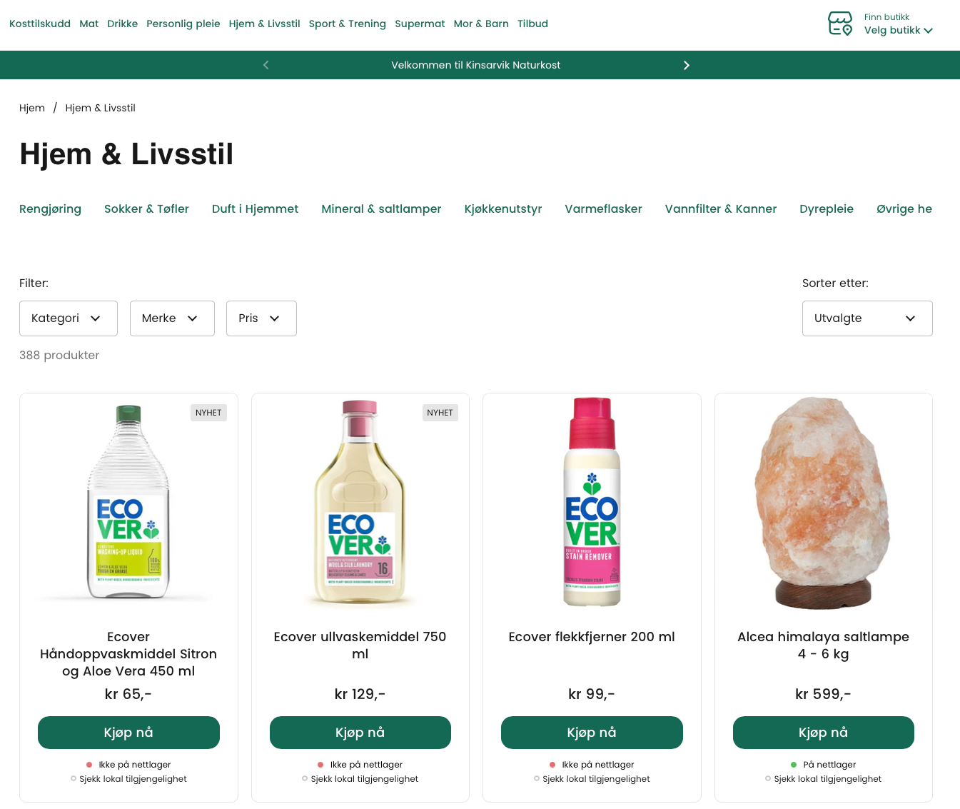 Kinsarvik.no er blant landets mest etablerte helsekostkjeder, med 17 egne butikker, franchisepartnere og over 6 000 produkter i sortimentet. Appsalon leverte en fullverdig Shopify Plus-løsning som kombinerer effektiv netthandel med moderne butikkdrift.